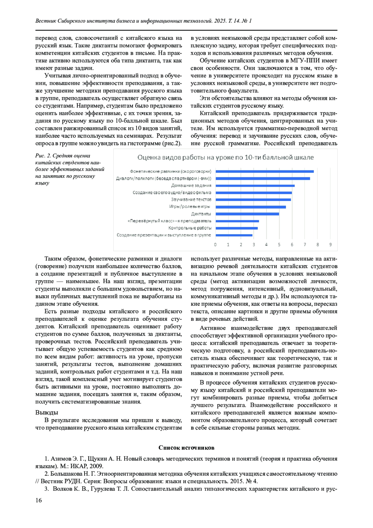 2. Большакова Н. Г. Этноориентированная методика обучения китайских учащихся самостоятельному чтению // Вестник РУДН. Серия: Вопросы образования: языки и специальность. 2015. № 4.