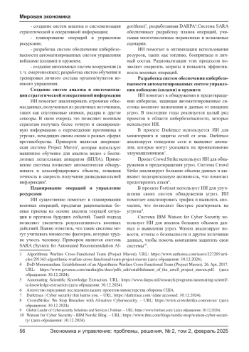 2. AI-wielding tech firms are giving a new shape to modern warfare [рус. Технологические компании, использующие искусственный интеллект, придают новую форму современной войне]. The Economis. Feb 16. 2023. URL: https://www.economist.com/business/2023/02/16/aiwielding-tech-firms-are-giving-a-new-shape-tomodern-warfare (дата обращения: 25.12.2024).