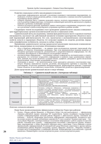 Статья: Инструменты коммуникации посредством социальных сетей территориальных органов исполнительной власти на примере Управы района Марьино Москвы (2023)