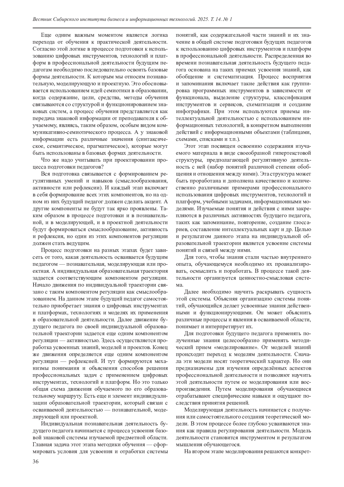 Процесс подготовки на разных этапах будет зависеть от того, какая деятельность осваивается будущим педагогом — познавательная, моделирующая или проектная. А индивидуальная образовательная траектория задается соответствующим компонентом регуляции.