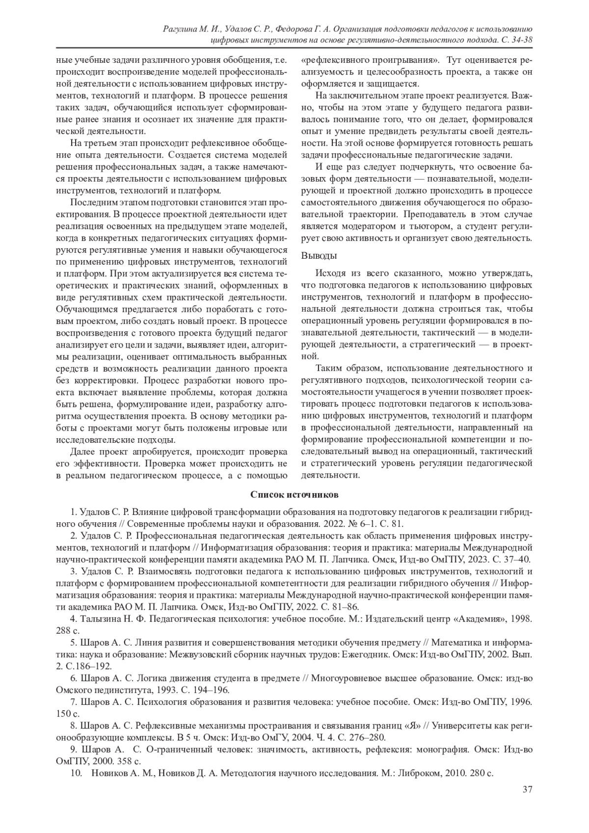 2. Удалов С. Р. Профессиональная педагогическая деятельность как область применения цифровых инструментов, технологий и платформ // Информатизация образования: теория и практика: материалы Международной научно-практической конференции памяти академика РАО М. П. Лапчика. Омск, Изд-во ОмГПУ, 2023. С. 37-40.