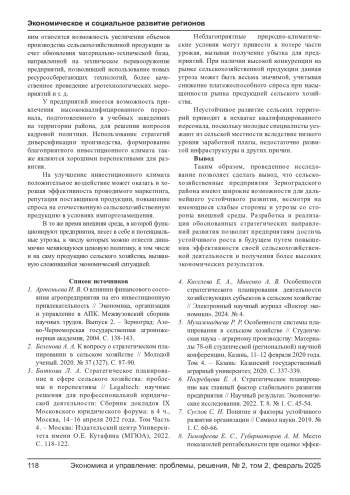 4. Киселева Е. А., Миненко А. В. Особенности стратегического планирования деятельности хозяйствующих субъектов в сельском хозяйстве // Электронный научный журнал “Вектор экономики”. 2024. № 4. EDN: QFLSQT