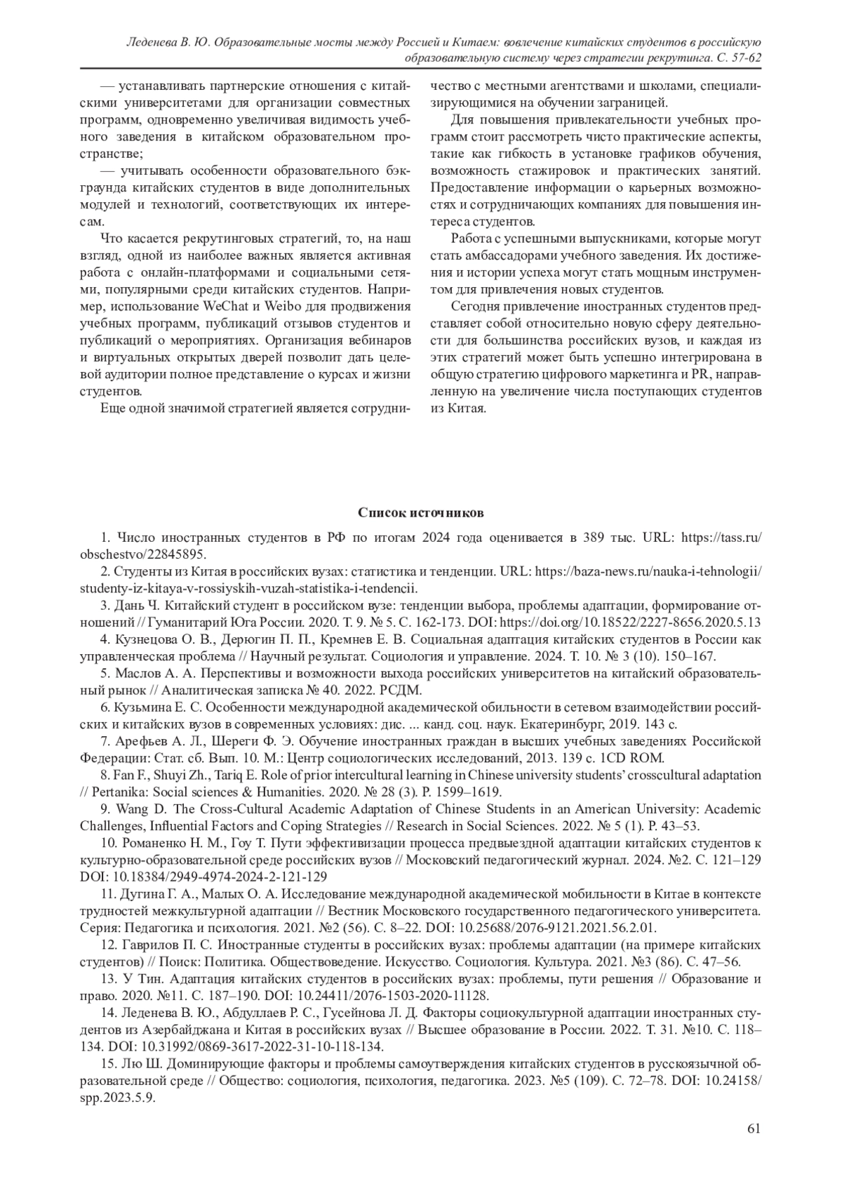 15. Лю Ш. Доминирующие факторы и проблемы самоутверждения китайских студентов в русскоязычной образовательной среде // Общество: социология, психология, педагогика. 2023. №5 (109). С. 72-78. https://doi.org/10.24158/spp.2023.5.9.