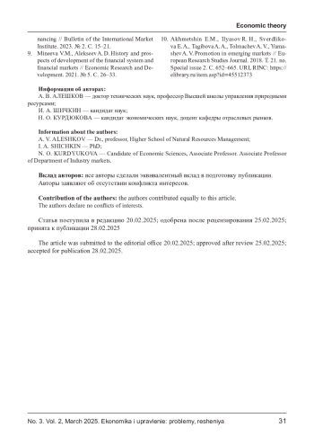 9. Минеева В.М., Алексеев А. Д. История и перспективы развития финансовой системы и финансовых рынков // Экономические исследования и разработки. 2021. № 5. С. 26-33. EDN: ZTPEPF