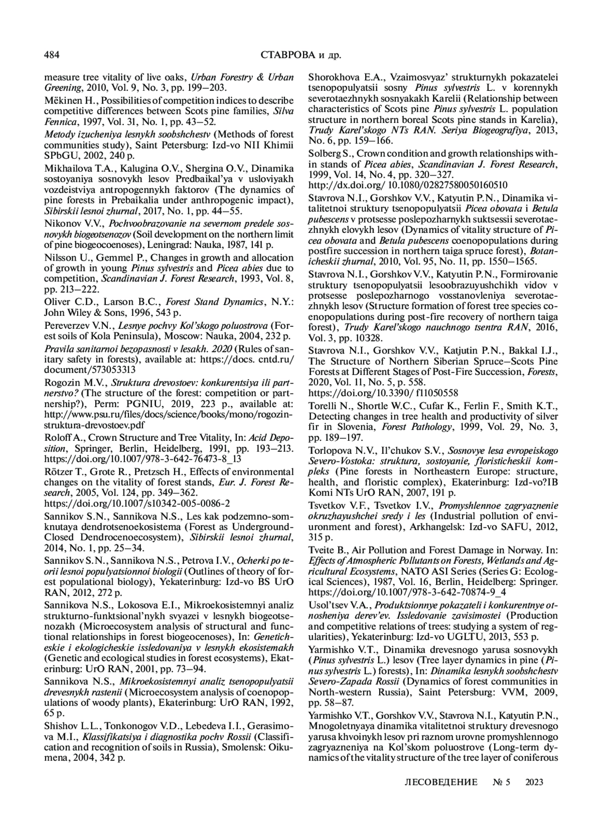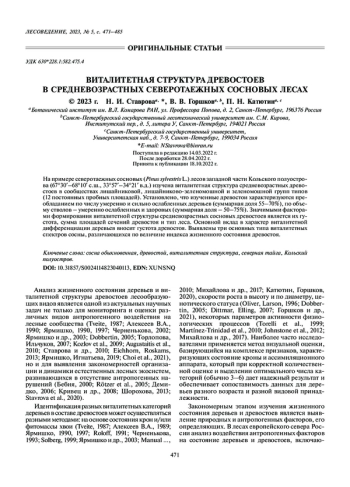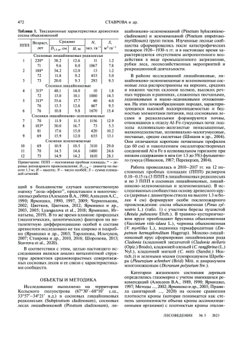 65. Stavrova N.I., Gorshkov V.V.,Katjutin P.N.,Bakkal I.J. The Structure of Northern Siberian Spruce–Scots Pine Forests at Different Stages of Post-Fire Succession // Forests. 2020. V. 11. № 5. P. 558. DOI: 10.3390/f11050558 EDN: AXNLFQ