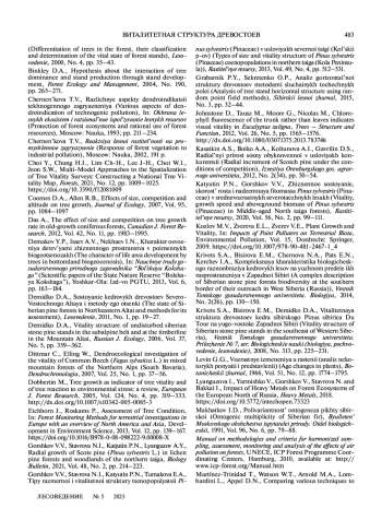 37. Ярмишко В.Т. Состояние сосновых древостоев // Влияние промышленного атмосферного загрязнения на сосновые леса Кольского полуострова. 1990. Л.: БИН РАН. С. 104–109.