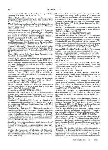 60. Nilsson U., Gemmel P. Changes in growth and allocation of growth in young Pinus sylvestris and Picea abies due to competition // Scandinavian Journal of Forest Research. 1993. V. 8. P. 213–222.