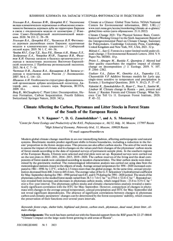 27. Чендев Ю.Г., Соэр Т.Д., Холл Р.Б., Петин А.Н., Новых Л.Л., Заздравных Е.А., Чевердин Ю.И., Тищенко В.В., Филатов К.И. Оценка запасов и баланса органического углерода в экосистемах лесополос Восточно-Европейской лесостепи // Проблемы региональной экологии. 2013. № 4. С. 7–14. EDN: RNESWZ