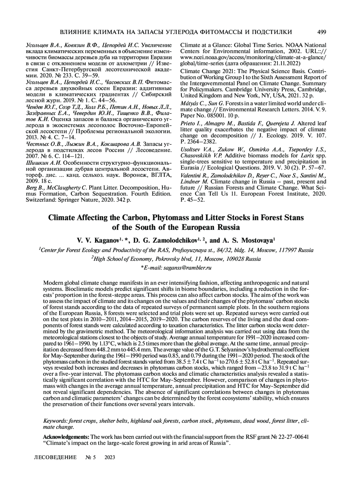 6. Каганов В.В. Изменение экосистемных запасов углерода при облесении в степной и полупустынной зонах Европейской части России // Проблемы региональной экологии. 2012. № 4. С. 7–12. EDN: PILYFV