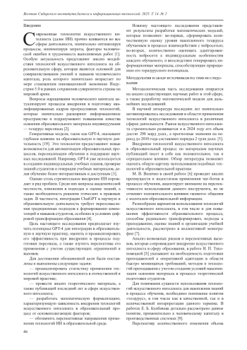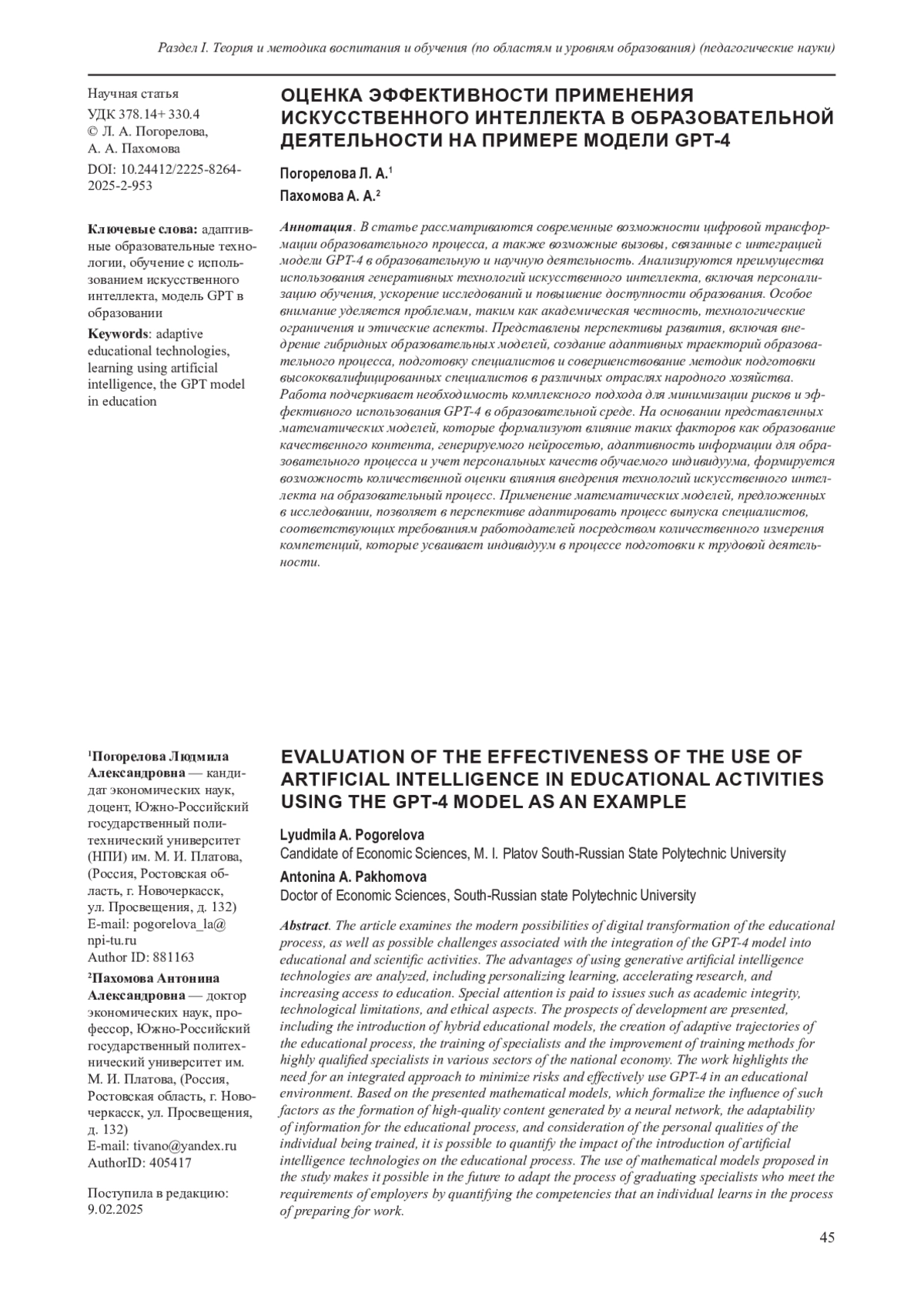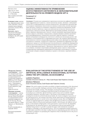 Статья: ОЦЕНКА ЭФФЕКТИВНОСТИ ПРИМЕНЕНИЯ ИСКУССТВЕННОГО ИНТЕЛЛЕКТА В ОБРАЗОВАТЕЛЬНОЙ ДЕЯТЕЛЬНОСТИ НА ПРИМЕРЕ МОДЕЛИ GPT-4 (2025)