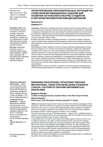 Мотивационное задание является не только основным средством формирования познавательных интересов, но и способом осуществления мотивации. Авторы рассматривают мотивационные задания как основу проектирования образовательных ситуаций, стимулирующих применение логических приемов, составляющих логическую культуру. На основе анализа психолого-педагогической литературы выделены этапы проектирования образовательной ситуации и перечислены требования к конструированию мотивационных заданий. В статье приведены примеры мотивационных заданий, апробированных в обучении математическим дисциплинам. Описанные примеры направлены на формирование следующих логических приемов: взаимообратные отношения необходимости и достаточности, классификация.