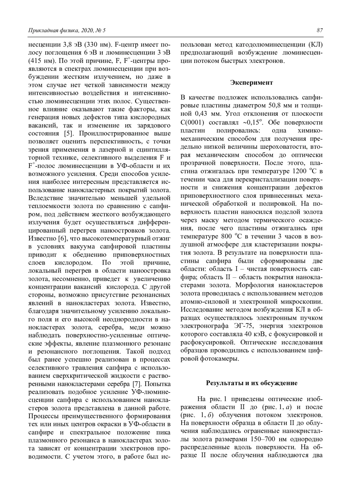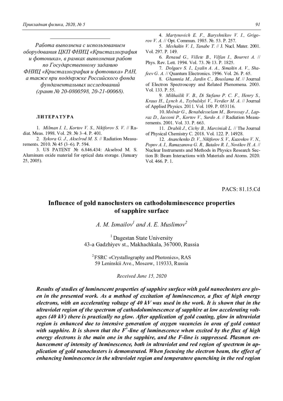 Исмаилов А. М., Муслимов А. Э. Влияние нанокластеров золота на катодолюминесценцию поверхности сапфира 86