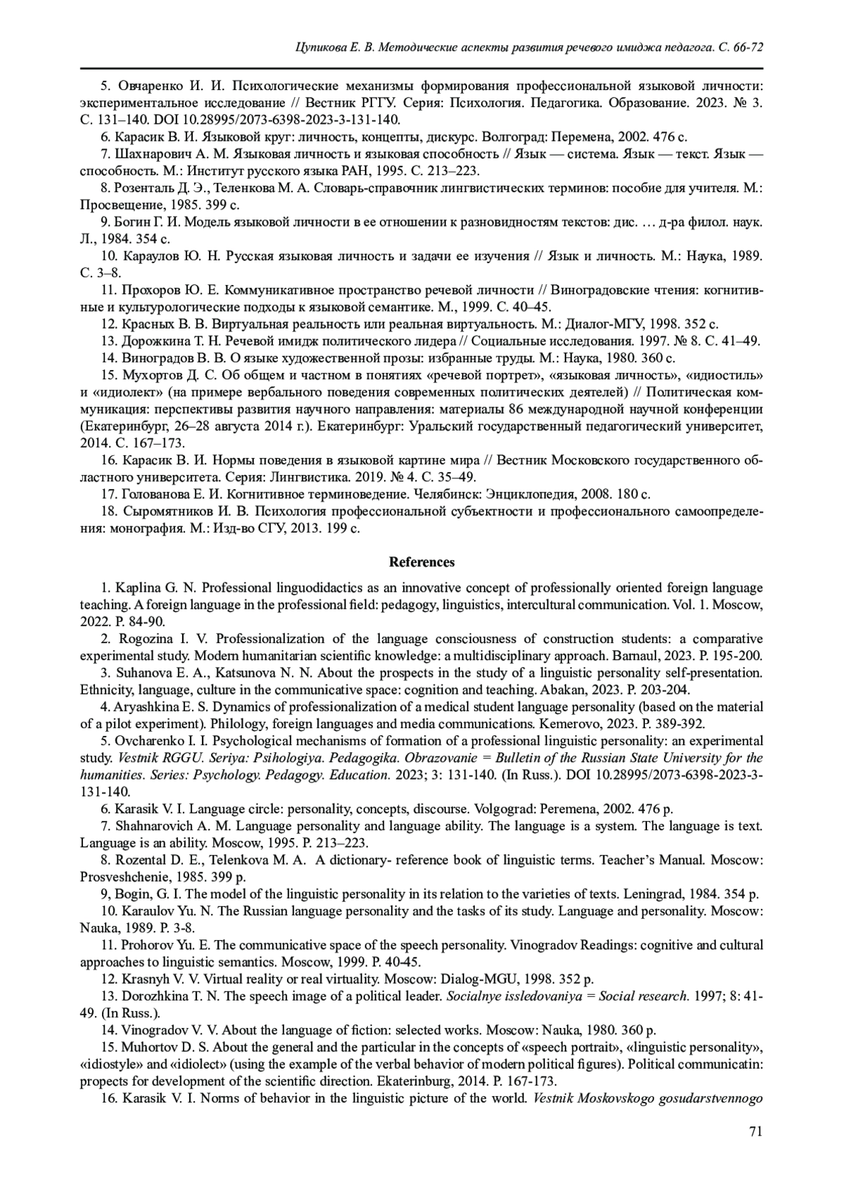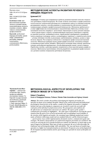 Статья: МЕТОДИЧЕСКИЕ АСПЕКТЫ РАЗВИТИЯ РЕЧЕВОГО ИМИДЖА ПЕДАГОГА (2025)