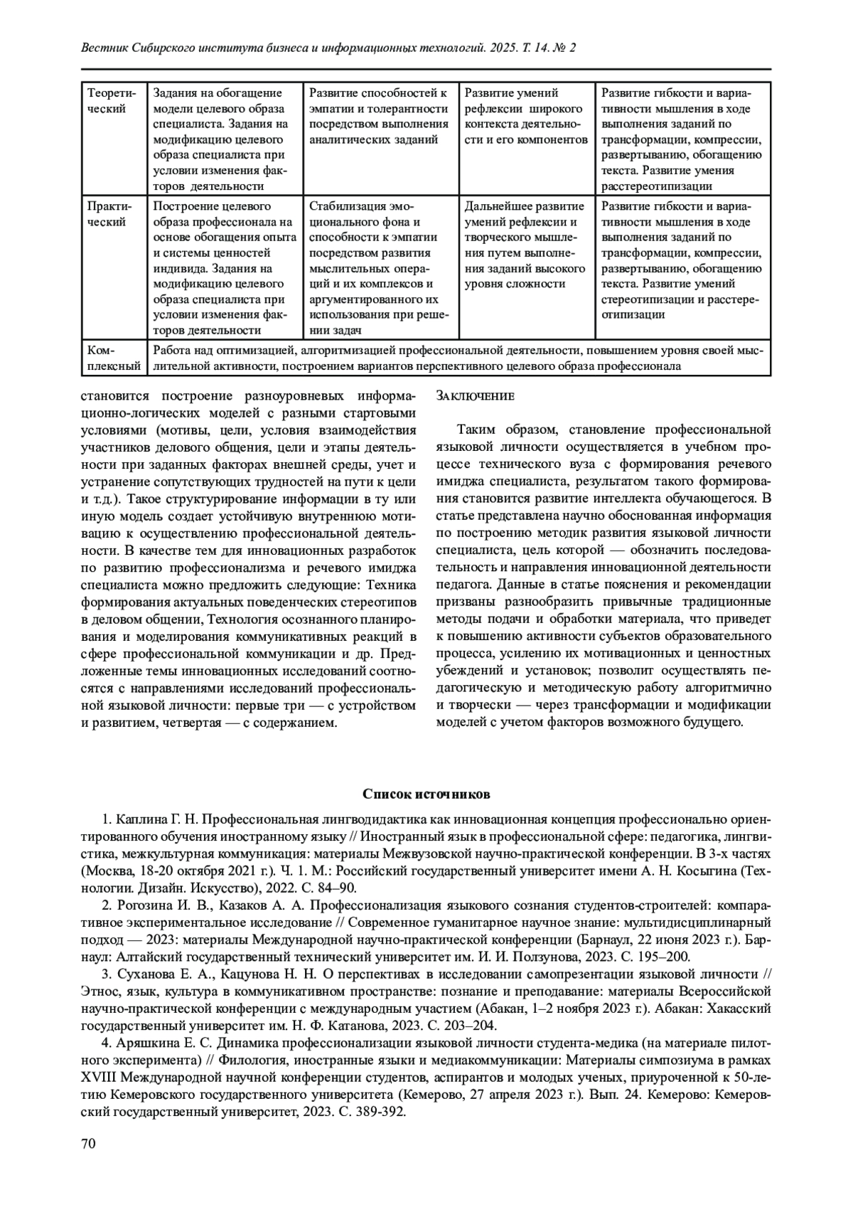 ЦУПИКОВА Е. В. МЕТОДИЧЕСКИЕ АСПЕКТЫ РАЗВИТИЯ РЕЧЕВОГО ИМИДЖА ПЕДАГОГА // ВЕСТНИК СИБИРСКОГО ИНСТИТУТА БИЗНЕСА И ИНФОРМАЦИОННЫХ ТЕХНОЛОГИЙ. 2025. ТОМ 14, № 2