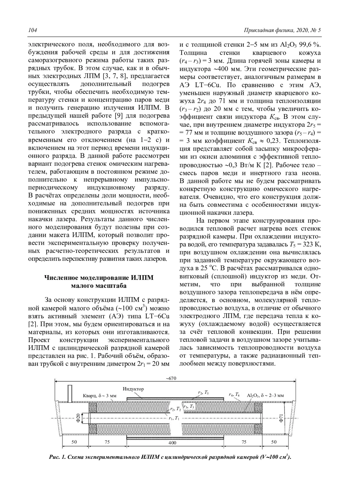 Батенин В. М., Лябин Н. А., Маликов М. М. Численное моделирование лазера на парах меди с индукционным разрядом и дополни-тельным подогревом 103