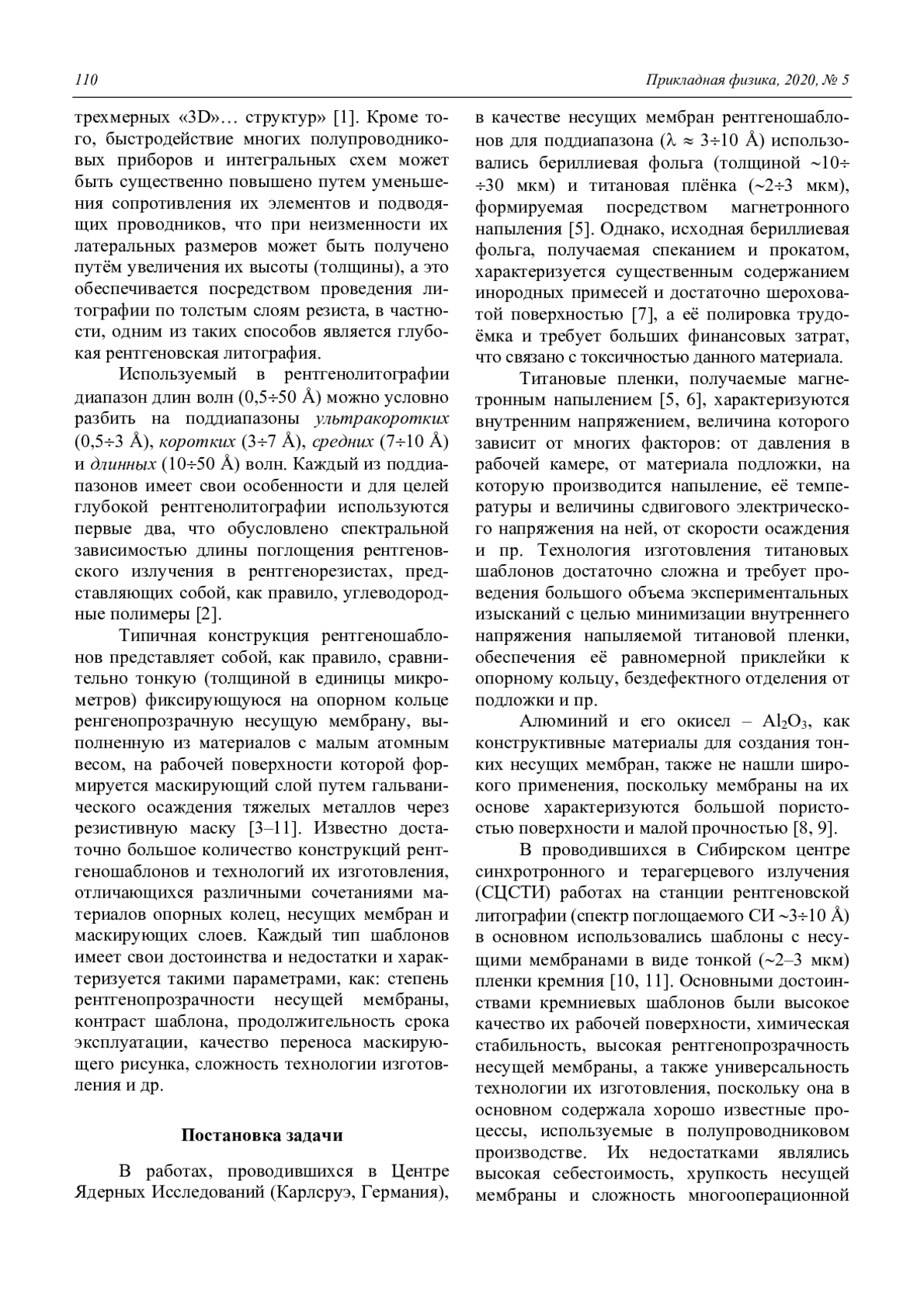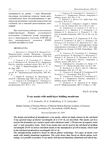Генцелев А. Н., Гольденберг Б. Г., Лемзяков А. Г. Рентгеношаблоны с многослойной несущей мембраной 109
