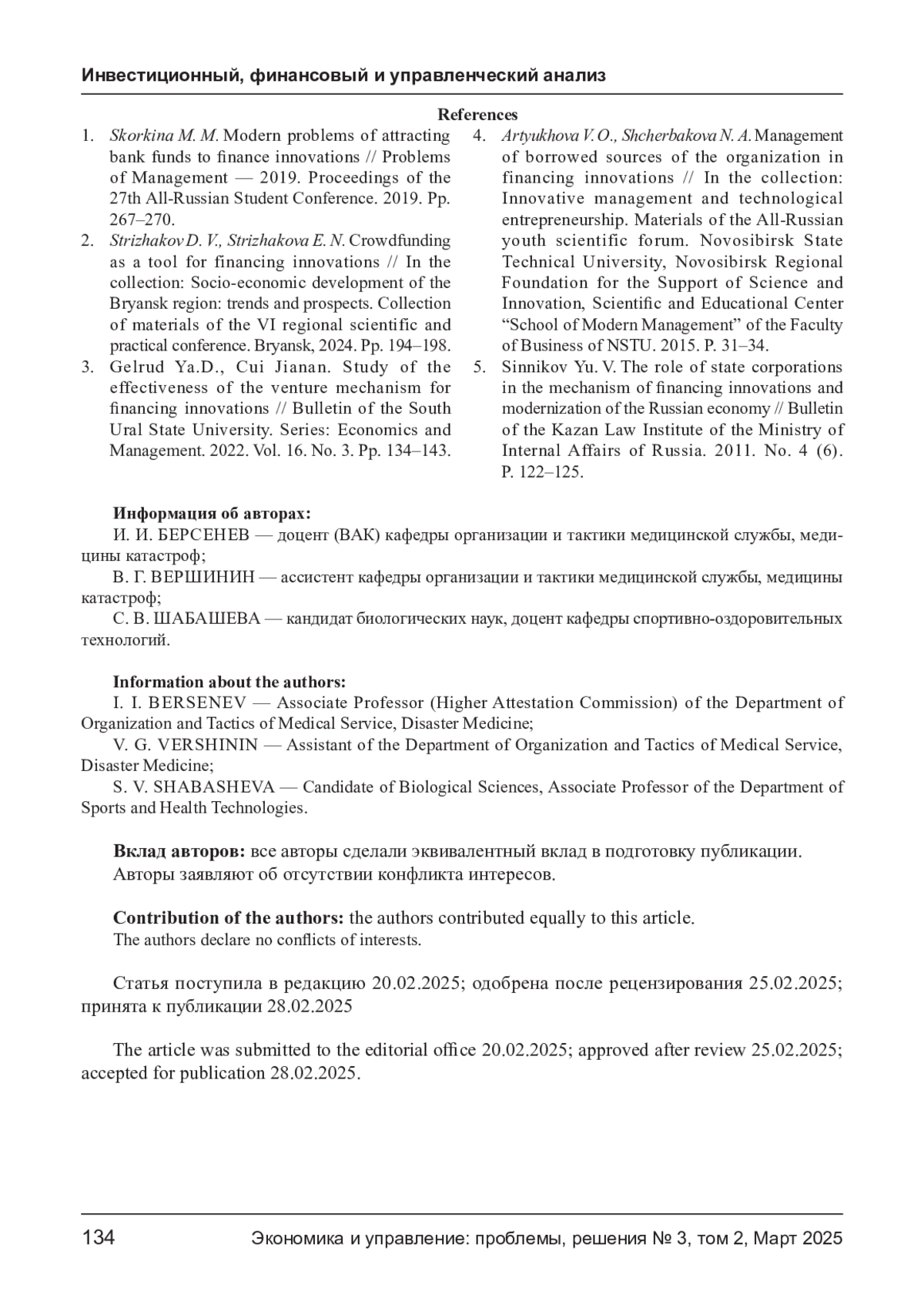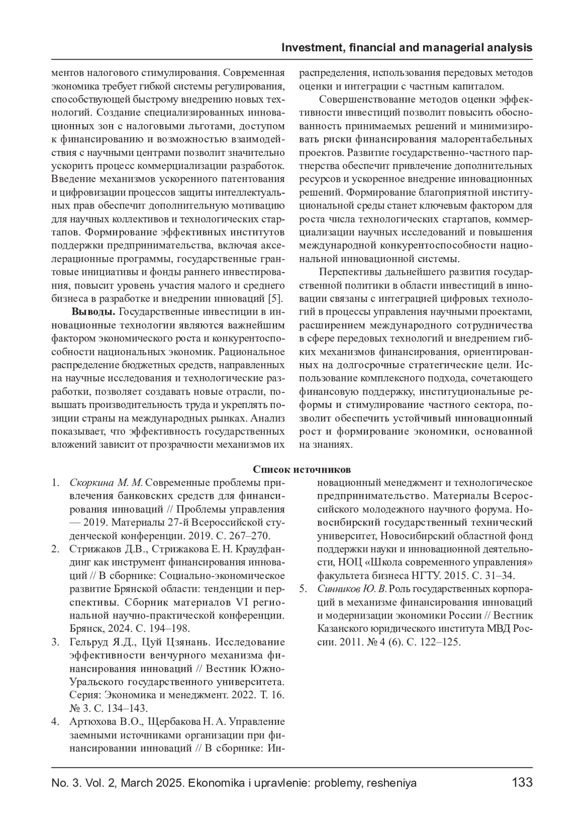 3. Гельруд Я.Д., Цуй Цзянань. Исследование эффективности венчурного механизма финансирования инноваций // Вестник Южно- Уральского государственного университета. Серия: Экономика и менеджмент. 2022. Т. 16. № 3. С. 134-143. EDN: GZIEIA