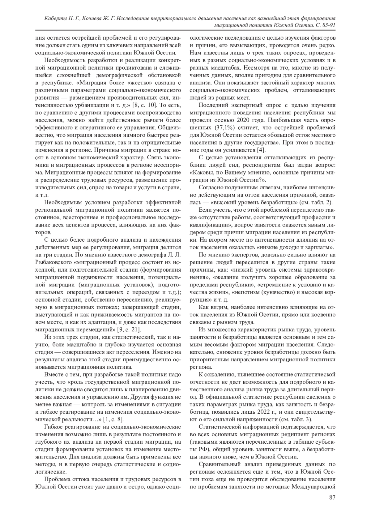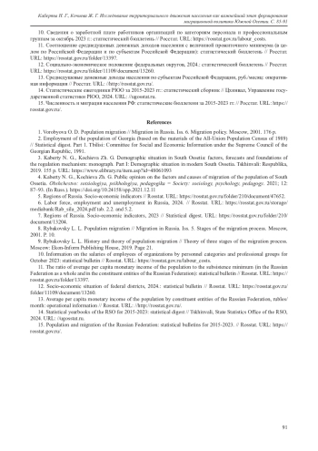 4. Каберты Н. Г., Кочиева Ж. Г. Общественное мнение о факторах и причинах миграции населения Южной Осетии // Общество: социология, психология, педагогика. 2021. № 12. С. 87-93. https://doi.org/10.24158/spp.2021.12.11