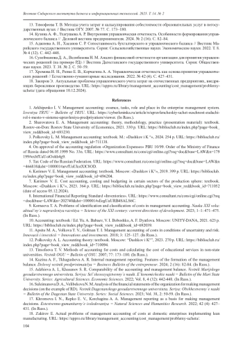 1. Архипенко И. В. Управленческий учет: сущность, задачи, роль и место в системе управления предприятием // Известия ТРТУ. URL: https://cyberleninka.ru/article/n/upravlencheskiy-uchet-suschnost-zadachi-rol-i-mesto-v-sisteme-upravleniya-predpriyatiem/viewer (дата обращения 01.12.2024).