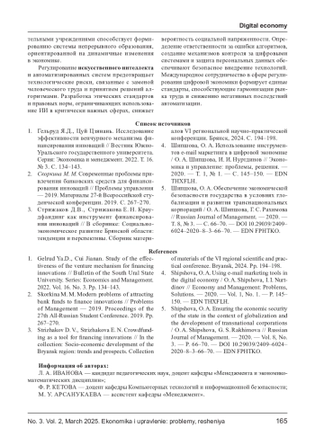 1. Гельруд Я.Д., Цуй Цзянань. Исследование эффективности венчурного механизма финансирования инноваций // Вестник ЮжноУральского государственного университета. Серия: Экономика и менеджмент. 2022. Т. 16.№ 3. С. 134-143. EDN: GZIEIA