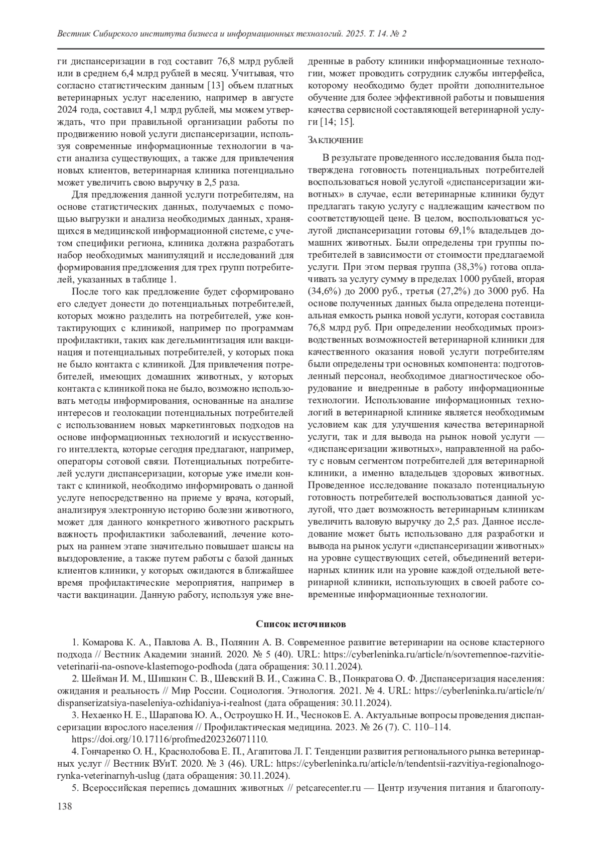 4. Гончаренко О. Н., Краснолобова Е. П., Агапитова Л. Г. Тенденции развития регионального рынка ветеринарных услуг // Вестник ВУиТ. 2020. № 3 (46). URL: https://cyberleninka.ru/article/n/tendentsii-razvitiya-regionalnogo-rynka-veterinarnyh-uslug (дата обращения: 30.11.2024).