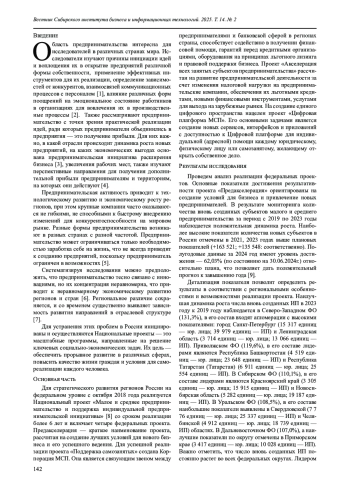 Увеличение доли предпринимательства в регионах России будет способствовать экономическому росту регионов, созданию новых отраслей, дополнительных рабочих мест, развитию инновационной инфраструктуры и значительному повышению качества жизни занятых в бизнесе и всего населения. Данное исследование направлено на анализ эффективности реализации Национального проекта «Малое и среднее предпринимательство и поддержка индивидуальной предпринимательской инициативы», выявление проблемных зон, оценку влияние на развитие региональной экономики, уровень вовлеченности потенциальных участников проектов. Целью исследования является выявление возможностей для повышения эффективности проводимых мероприятий и стимулирования роста региональной экономики через развитие предпринимательских экосистем. Проведен анализа реализации Национального проекта «Малое и среднее предпринимательство и поддержка индивидуальной предпринимательской инициативы» по ключевым показателям четырех федеральных проектов. Детализирован показатель «Количества вновь созданных субъектов МСП» в части юридических лиц и индивидуальных предпринимателей. Определены инструменты государственной поддержки с использование Цифровой платформы. Разработаны рекомендации для формирования практических предложений поддержки регионального предпринимательства.