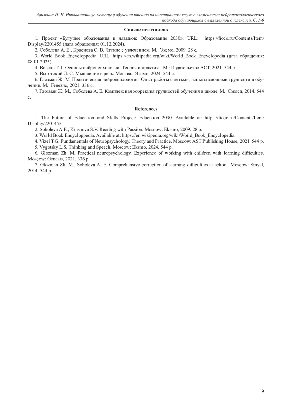 7. Глозман Ж. М., Соболева А. Е. Комплексная коррекция трудностей обучения в школе. М.: Смысл, 2014. 544 с.