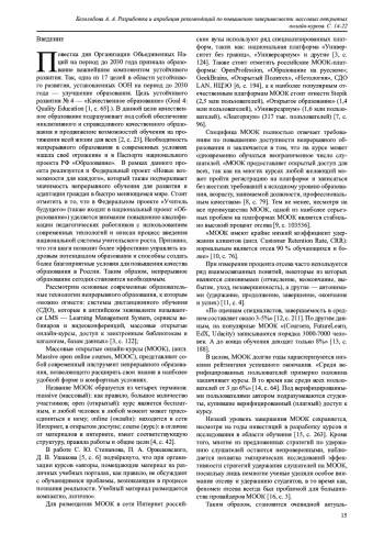 15. Shah V., Murthy S., Warriem J., Sahasrabudhe S., Banerjee G., Iyer S. Learner-centric MOOC model: a pedagogical design model towards active learner participation and higher completion rates // Educational Technology Research and Development. 2022. № 70(1). С. 263-288. https://doi.org/10.1007/s11423-022-10081-4.