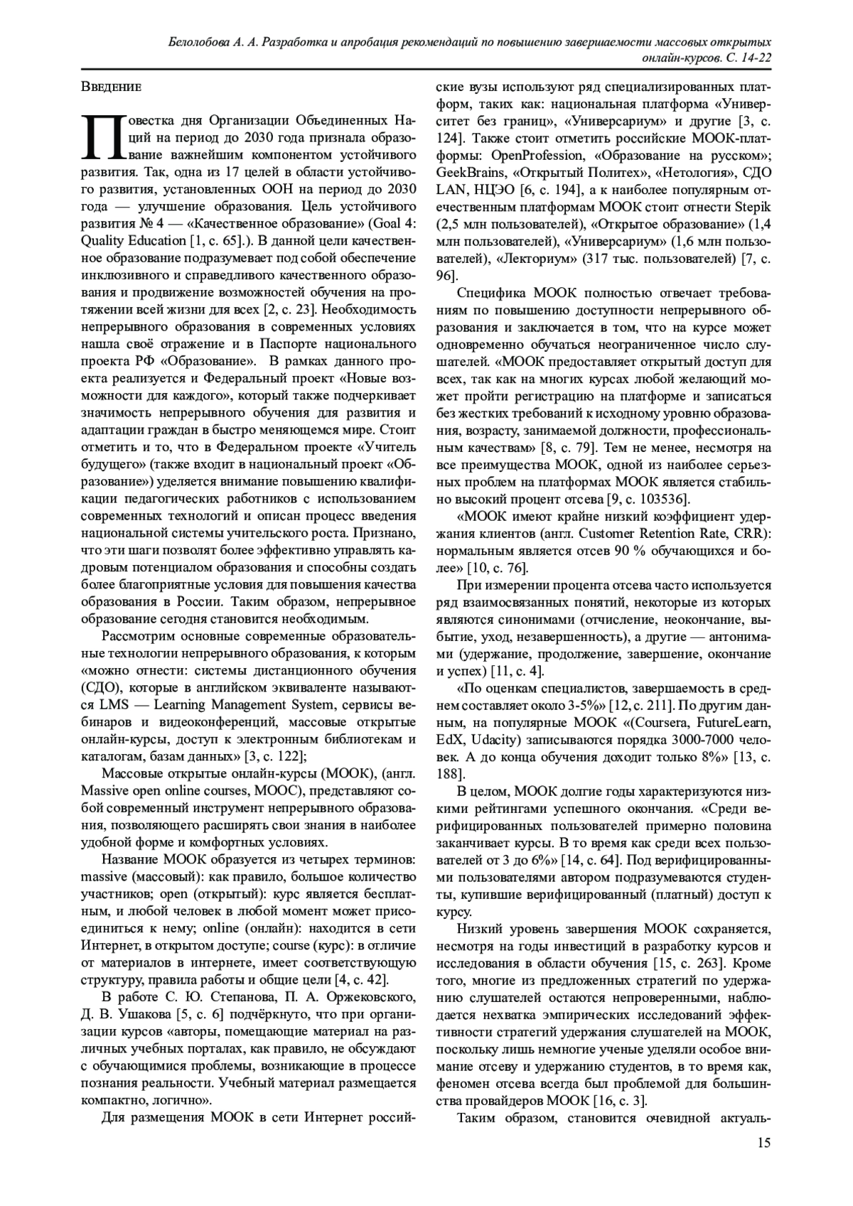 14. Багрова Е. В. Какую аудиторию привлекают массовые открытые онлайн-курсы (МООК)? // Актуальные вопросы современного образования: сборник международной научно-практической конференции. Саратов: ООО «Академия Бизнеса», 2020. С. 61-66.