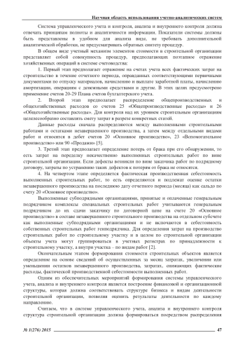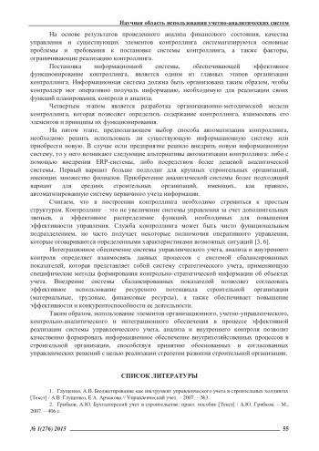 Статья: КОНЦЕПТУАЛЬНАЯ МОДЕЛЬ УПРАВЛЕНЧЕСКОГО УЧЕТА, АНАЛИЗА И ВНУТРЕННЕГО КОНТРОЛЯ В СТРОИТЕЛЬСТВЕ (2015)