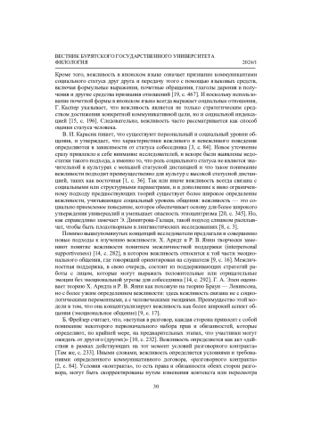 1. Власян Г. Р. Различные подходы к определению лингвистической вежливости // Вестник Нижневартовского государственного университета. 2010. № 3. С. 29-39. Текст: непосредственный. EDN: OXYMER