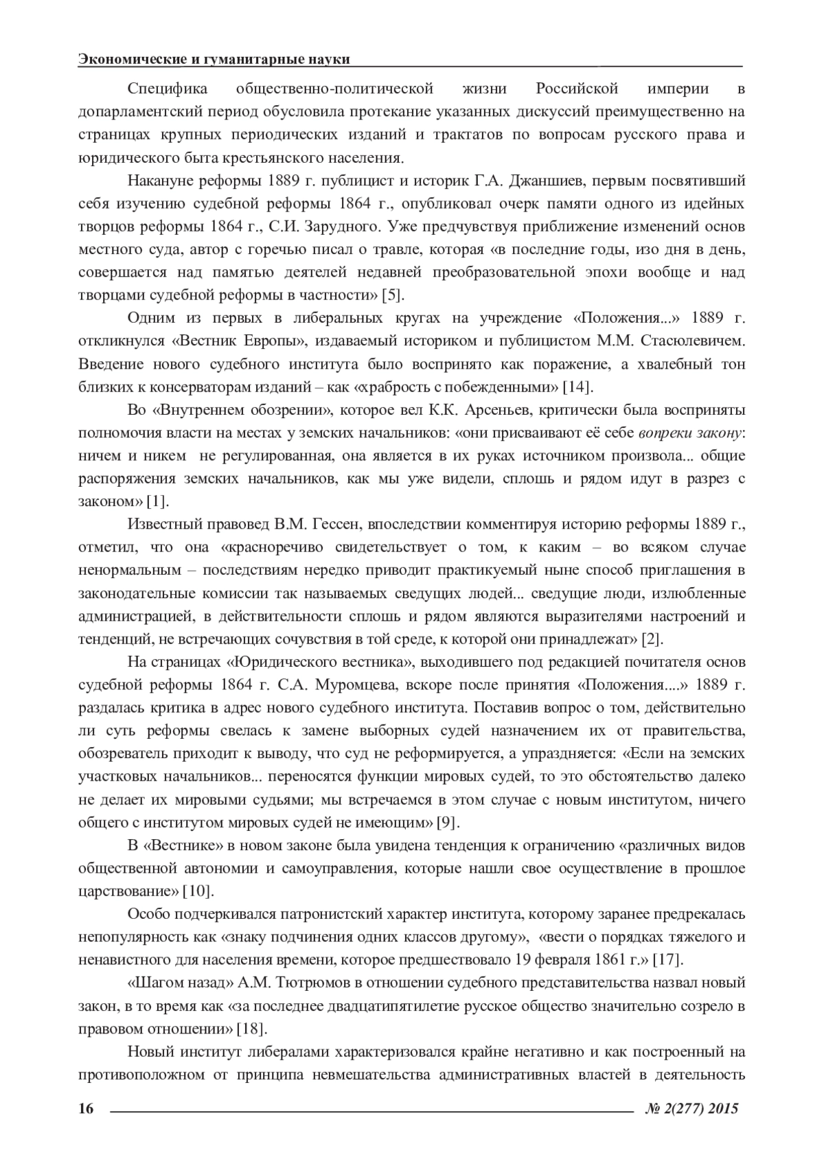 17. Тютрюмов, А.М. Земские начальники и нужды русской деревни [Текст] / А.М. Тютрюмов// Юридический вестник. - 1889. - № 6-7. - С. 312-323.