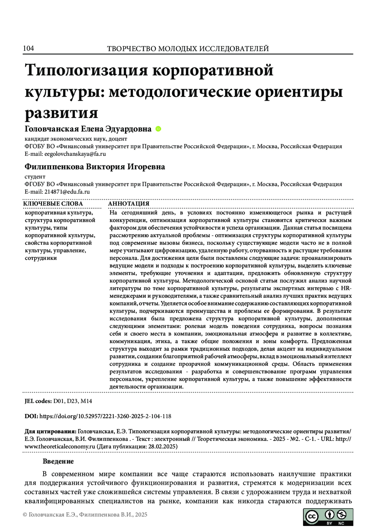 24. Торгунакова Е. В. Корпоративная культура: проблемы идентификации и управления // Экономика и управление. 2009. №12. URL: https://cyberleninka.ru/article/n/korporativnaya-kultura-problemy-identifikatsii-i-upravleniya (дата обращения: 09.03.2025). EDN: LAAGEX