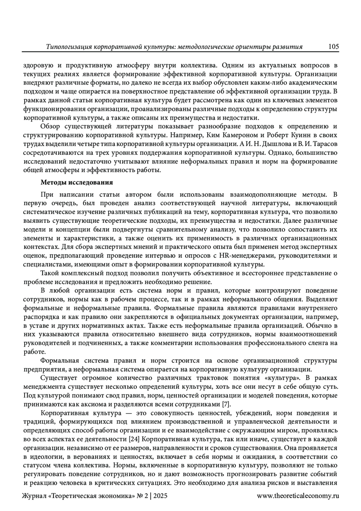 6. Гримашевич О. Н., Жданов С. А. Формирование корпоративной культуры предприятий в современных российских условиях // Промышленность: экономика, управление, технологии. 2018. №3 (72). URL: https://cyberleninka.ru/article/n/formirovanie-korporativnoy-kultury-predpriyatiy-v-sovremennyh-rossiyskih-usloviyah (дата обращения: 09.03.2025). EDN: UUCHVG