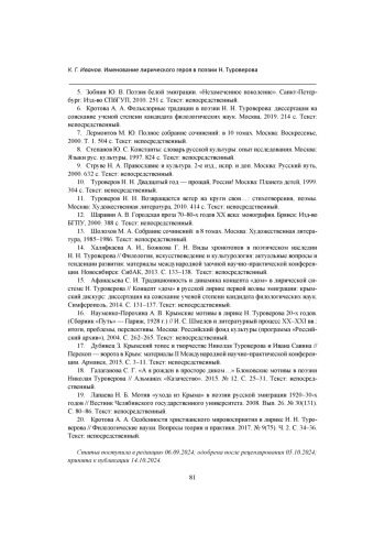 16. Науменко-Порохина А. В. Крымские мотивы в лирике Н. Туроверова 20-х годов. (Сборник “Путь” - Париж, 1928 г.) // И. С. Шмелев и литературный процесс XX-XXI вв.: итоги, проблемы, перспективы. Москва: Российский фонд культуры (программа “Российский архив”), 2004. С. 262-265. Текст: непосредственный.
