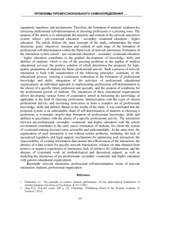1. Рубинштейн С.Л. Принцип творческой самодеятельности: К философским основам современной педагогики / С. Л. Рубинштейн // Вопросы психологии. - 1986. - № 4. - С. 101-109. EDN: YSTAPR