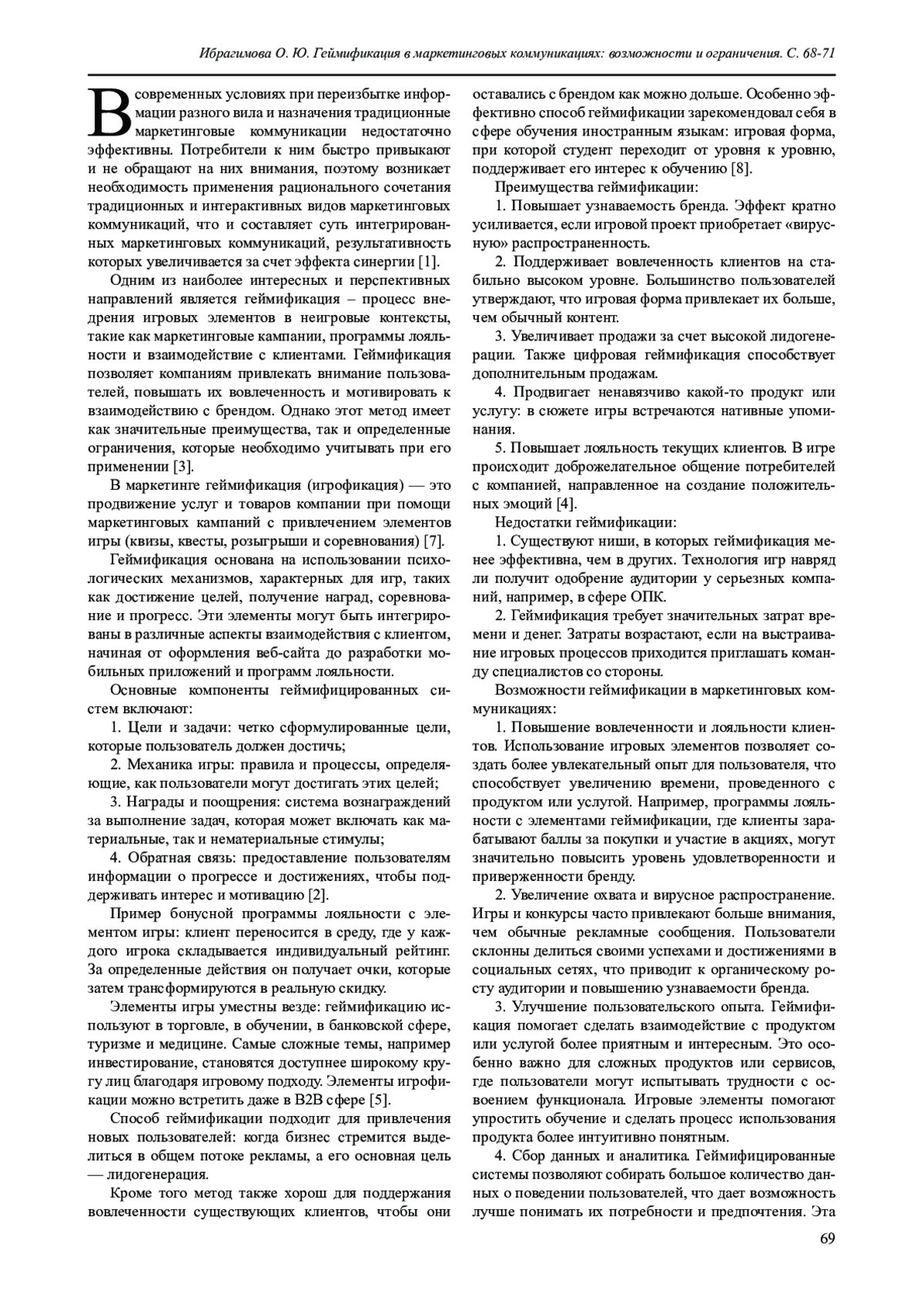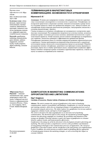 Статья: ГЕЙМИФИКАЦИЯ В МАРКЕТИНГОВЫХ КОММУНИКАЦИЯХ: ВОЗМОЖНОСТИ И ОГРАНИЧЕНИЯ (2025)