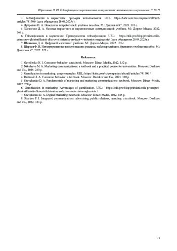 Ключевые фразы: геймификация, маркетинговые коммуникации, игровые элементы, вовлеченность аудитории, лояльность клиентов, программы лояльности, ЦИФРОВОЙ МАРКЕТИНГ, ПОТРЕБИТЕЛЬСКОЕ ПОВЕДЕНИЕ