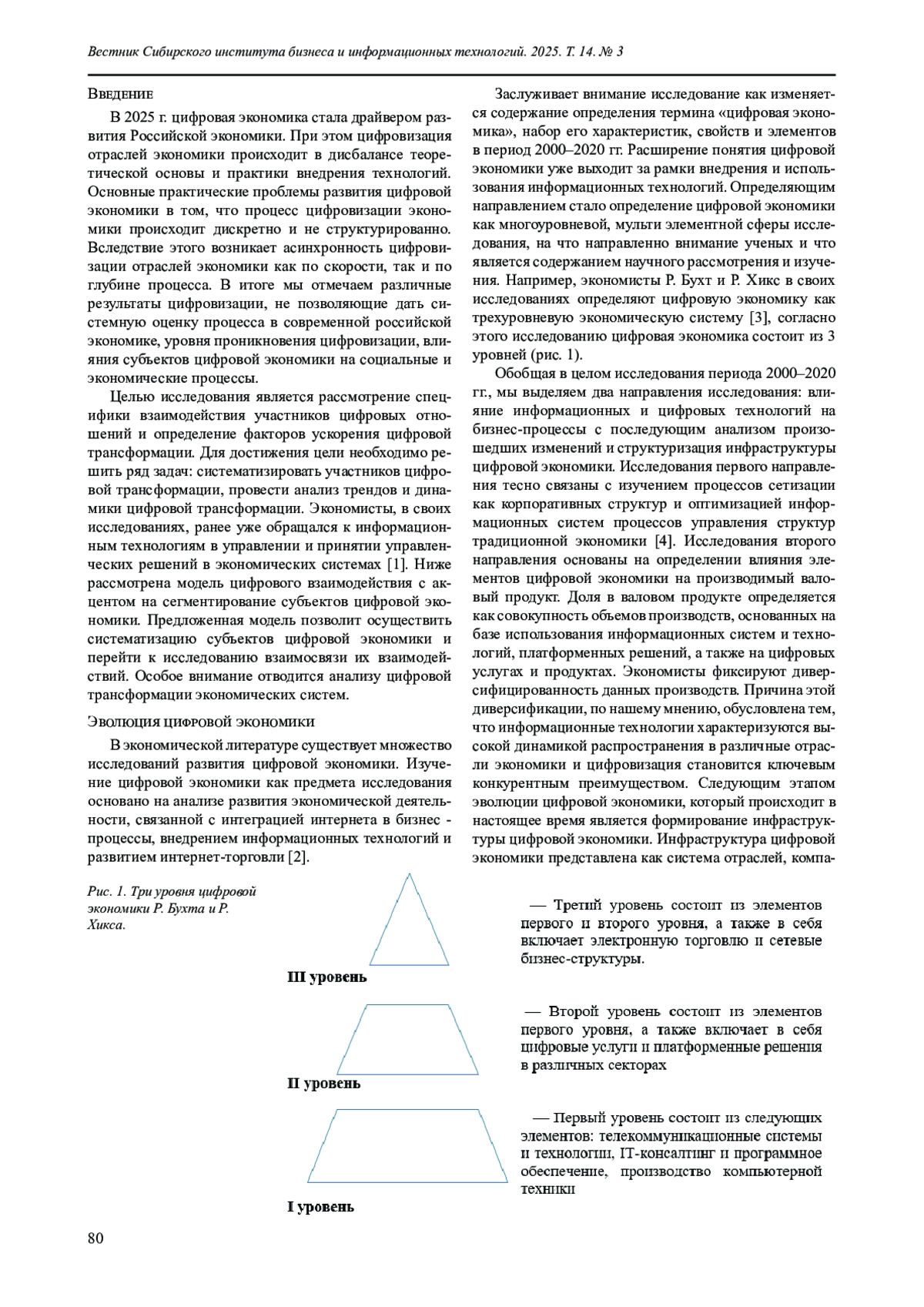 3. Бухт Р., Хикс Р. Определение, концептуализация и измерение цифровой экономики // Институт глобального развития. Серия рабочих документов. 2019. № 68. С. 2-26. URL: https://papers.ssrn.com/sol3/papers.cfm?abstract_id=3431732 (дата обращения: 26.04.2025).