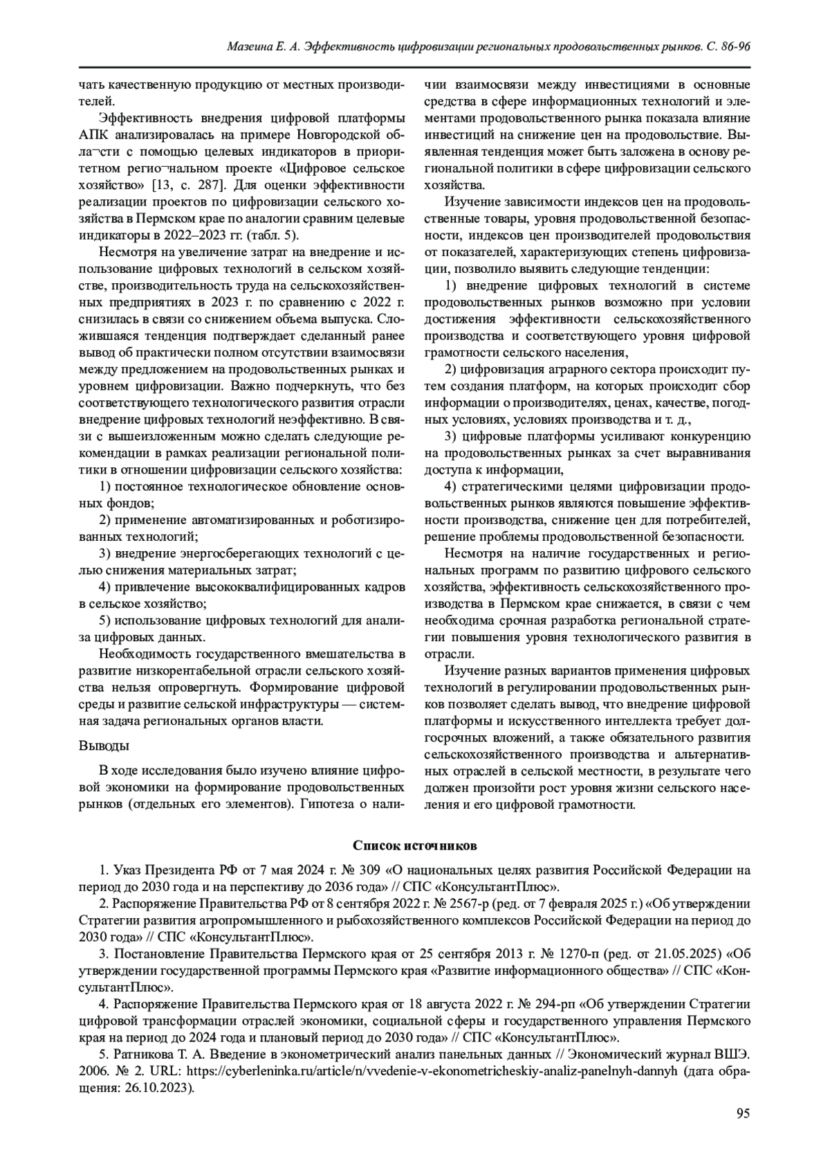 5. Ратникова Т. А. Введение в эконометрический анализ панельных данных // Экономический журнал ВШЭ. 2006. № 2. URL: https://cyberleninka.ru/article/n/vvedenie-v-ekonometricheskiy-analiz-panelnyh-dannyh (дата обращения: 26.10.2023).