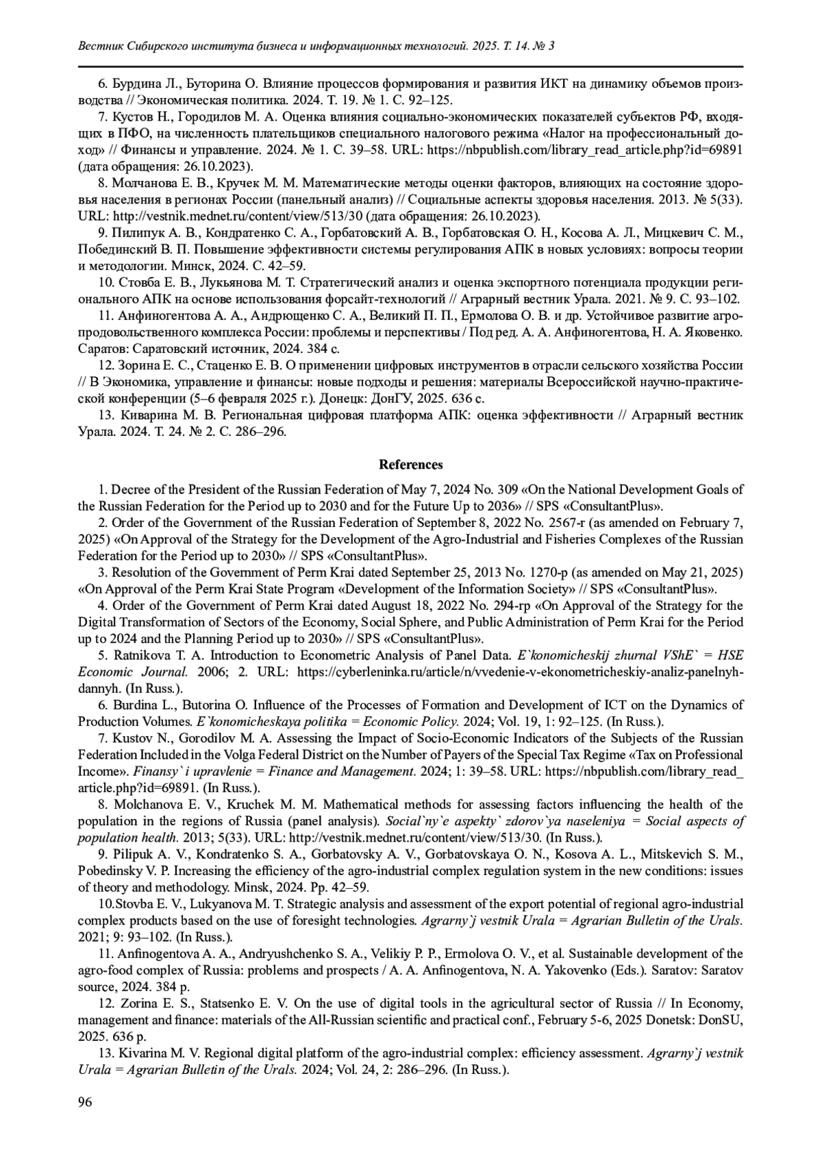 13. Киварина М. В. Региональная цифровая платформа АПК: оценка эффективности // Аграрный вестник Урала. 2024. Т. 24. № 2. С. 286-296.