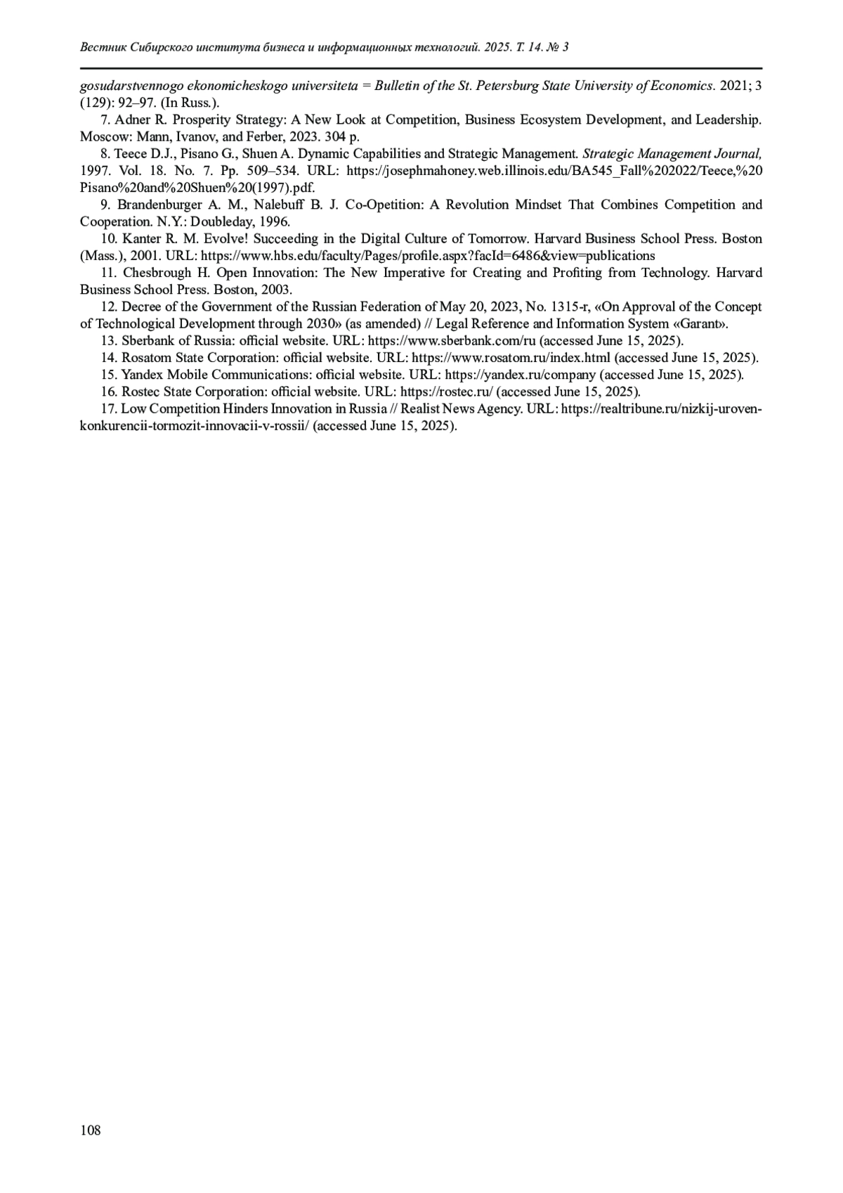 8. Teece D. J., Pisano G., Shuen A.. Dynamic capabilities and strategic Management. Strategic Management Journal, 1997. Vol. 18. № 7. Pp. 509-534. URL: https://josephmahoney.web.illinois.edu/BA545_Fall 2022/Teece, Pisano and Shuen (1997).pdf.