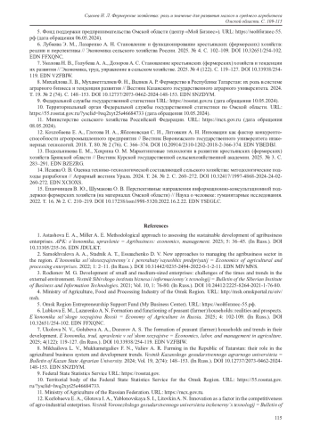 8. Михайлова Л. В., Мухаметгалиев Ф. Н., Валиев А. Р. Фермерство в Республике Татарстан: их роль в системе аграрного бизнеса и тенденция развития // Вестник Казанского государственного аграрного университета. 2024. Т. 19. № 2 (74). С. 148-153. https://doi.org/10.12737/2073-0462-2024-148-153. EDN SNZDYM.
