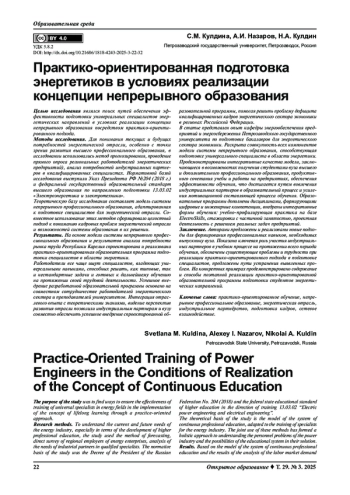 Статья: Практико-ориентированная подготовка энергетиков в условиях реализации концепции непрерывного образования (2025)