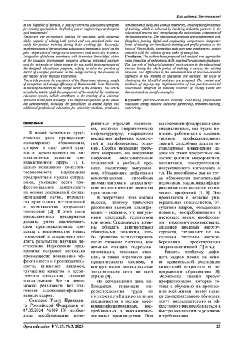 Ключевые фразы: ПРАКТИКО-ОРИЕНТИРОВАННОЕ ОБУЧЕНИЕ, непрерывное профессиональное образование, энергетическая отрасль, индустриальное партнерство, подготовка кадров, СЕТЕВОЕ ВЗАИМОДЕЙСТВИЕ