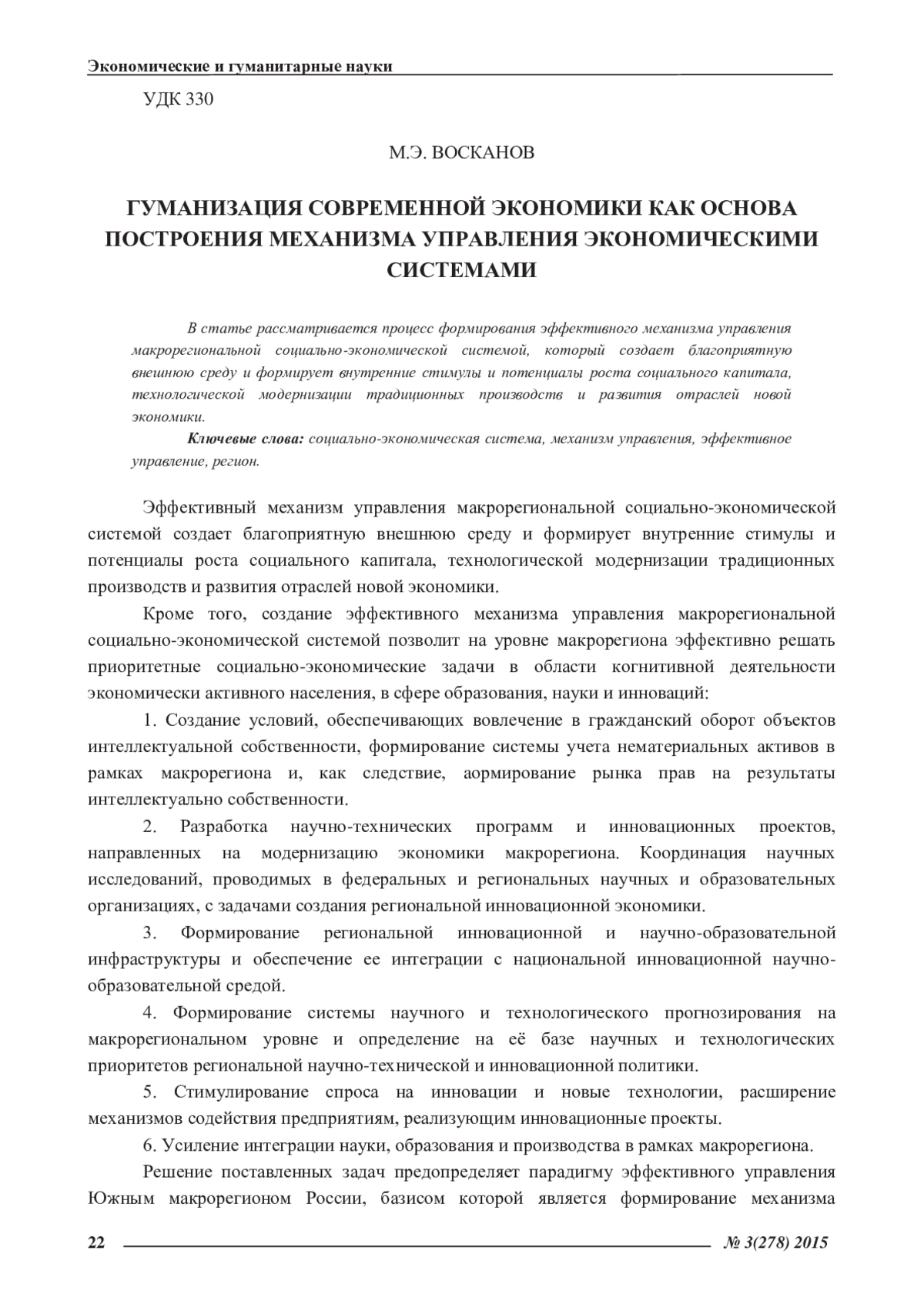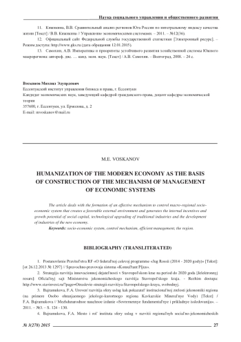 5. Восканов, М.Э. Влияние глобальных кризисов на стратегическое развитие региональных социально-экономических систем [Текст] / М.Э. Восканов // Международное научное издание «Современные фундаментальные и прикладные исследования» / Материалы международной научно-практической конференции «Актуальные проблемы современности» (24 - 25 августа 2012 г.). - 2012. - Спецвыпуск. - С. 24 - 37. EDN: NOZMHS