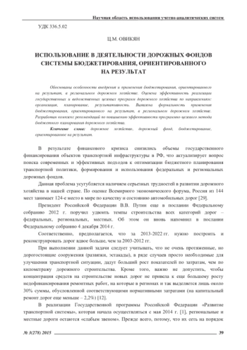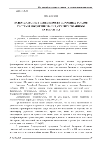 Обоснованы особенности внедрения и применения бюджетирования, ориентированного на результат, в региональном дорожном хозяйстве. Оценена эффективность реализации государственных и ведомственных целевых программ дорожного хозяйства по направлениям: организация, планирование, результативность. Выявлена формальность применения бюджетирования, ориентированного на результат, в региональном дорожном хозяйстве. Разработан комплекс рекомендаций по повышению эффективности программно-целевого метода бюджетного планирования дорожного хозяйства