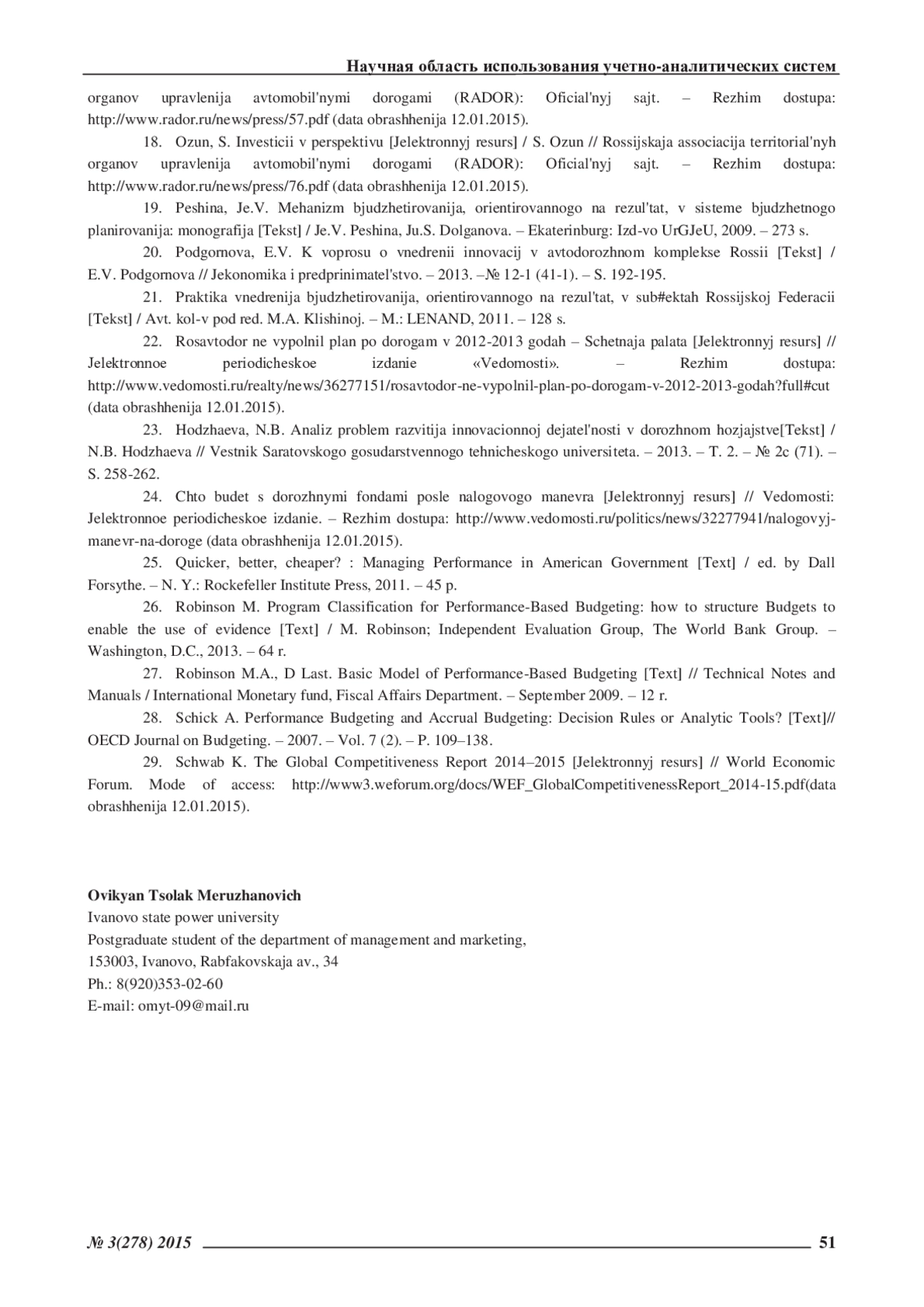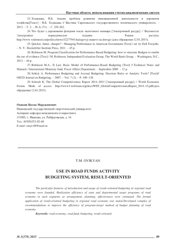14. Макашина, О.В. Бюджетирование, ориентированное на результат [Текст] / О.В. Макашина // Вестник ИГЭУ. - 2008. - Вып. 1. - С. 2-5. EDN: PFJKGJ