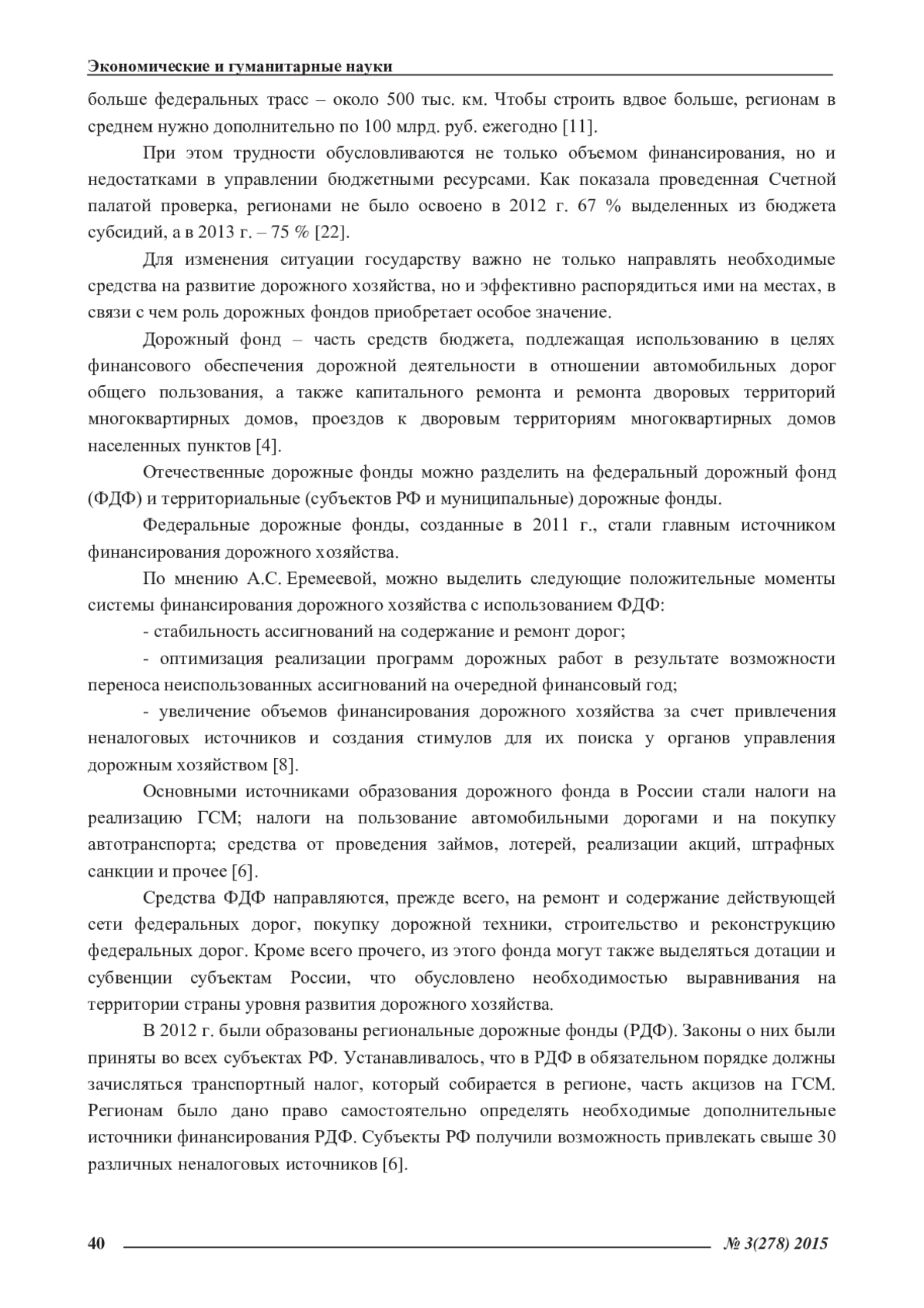 8. Еремеева, А.С. Актуальные проблемы финансового обеспечения дорожной отрасли [Электронный ресурс] / А.С. Еремеева // Экономические исследования: Интернет-журнал. - 2012. - №3(12). - Режим доступа: http://www.erce.ru/internet-magazine/magazine/31/487 (дата обращения 12.01.2015). EDN: PCYZMB