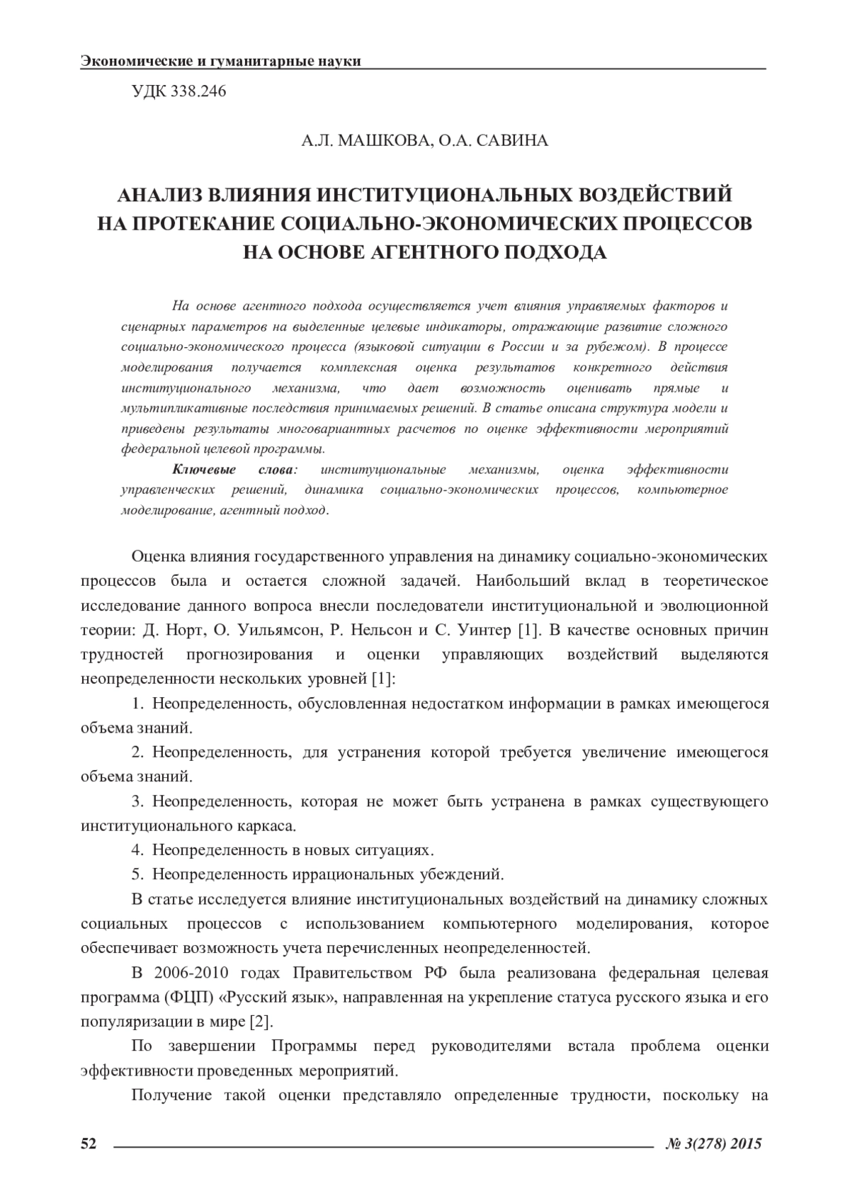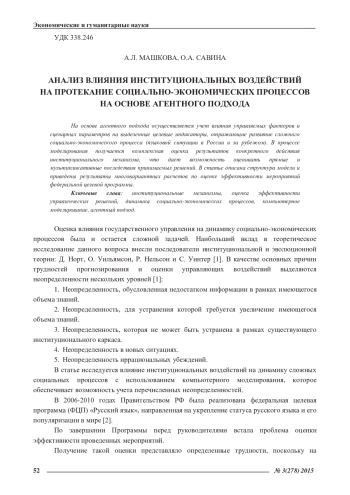 Оценка влияния государственного управления на динамику социально-экономических процессов была и остается сложной задачей. Наибольший вклад в теоретическое исследование данного вопроса внесли последователи институциональной и эволюционной теории: Д. Норт, О. Уильямсон, Р. Нельсон и С. Уинтер [1]. В качестве основных причин трудностей прогнозирования и оценки управляющих воздействий выделяются неопределенности нескольких уровней [1]: